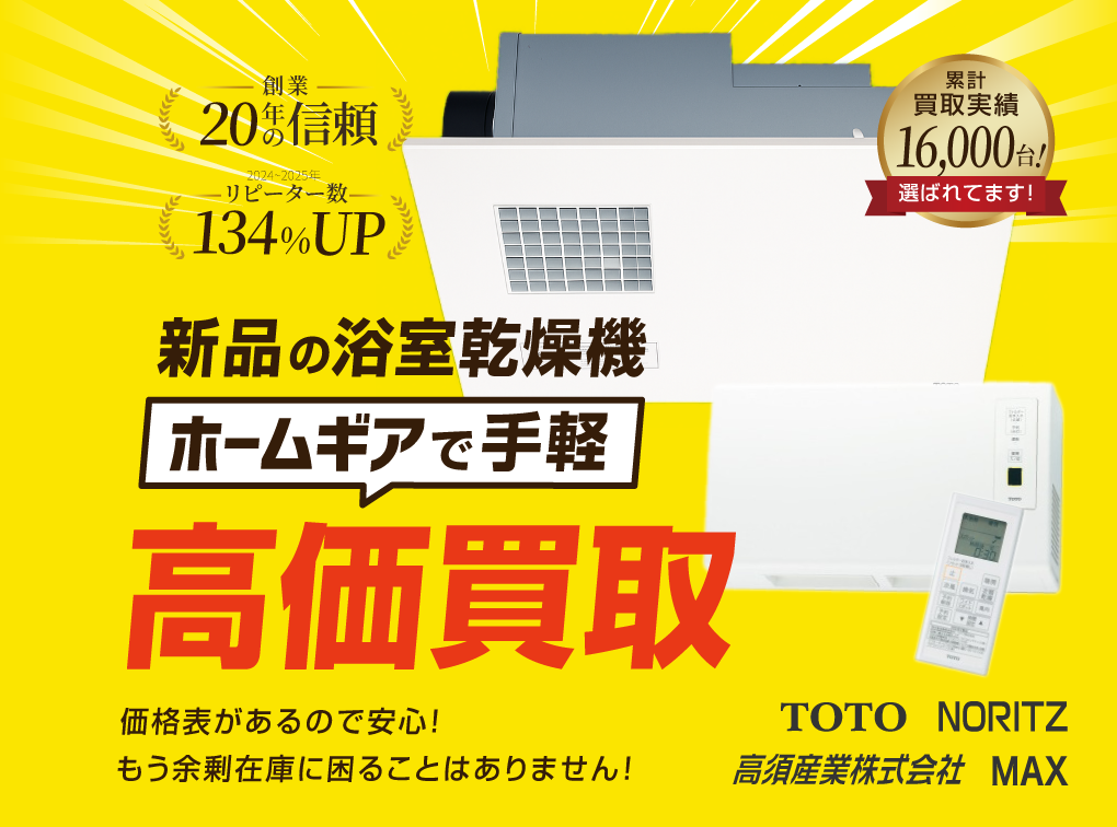 住設工具のホームギア 買取館では、創業来20年に渡り新品の浴室乾燥機を買取してきました。
